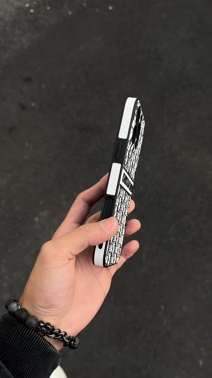 迪奧刺繡皮質磨砂手機殼