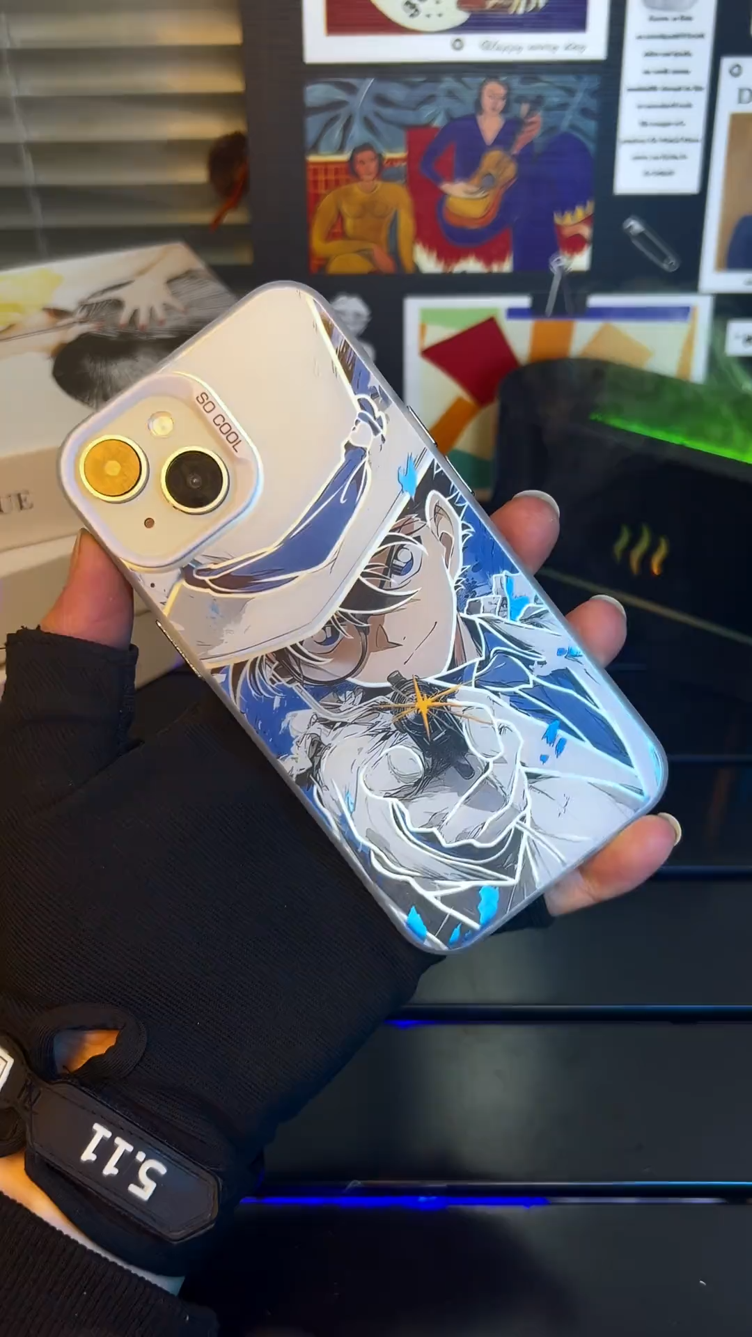 名偵探柯南彩銀線條漸變防摔手機殼