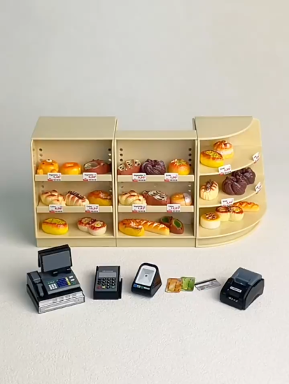 收銀臺轉角超市麵包店微縮模型玩具 | 現代收款臺貨架前臺過家家擺件